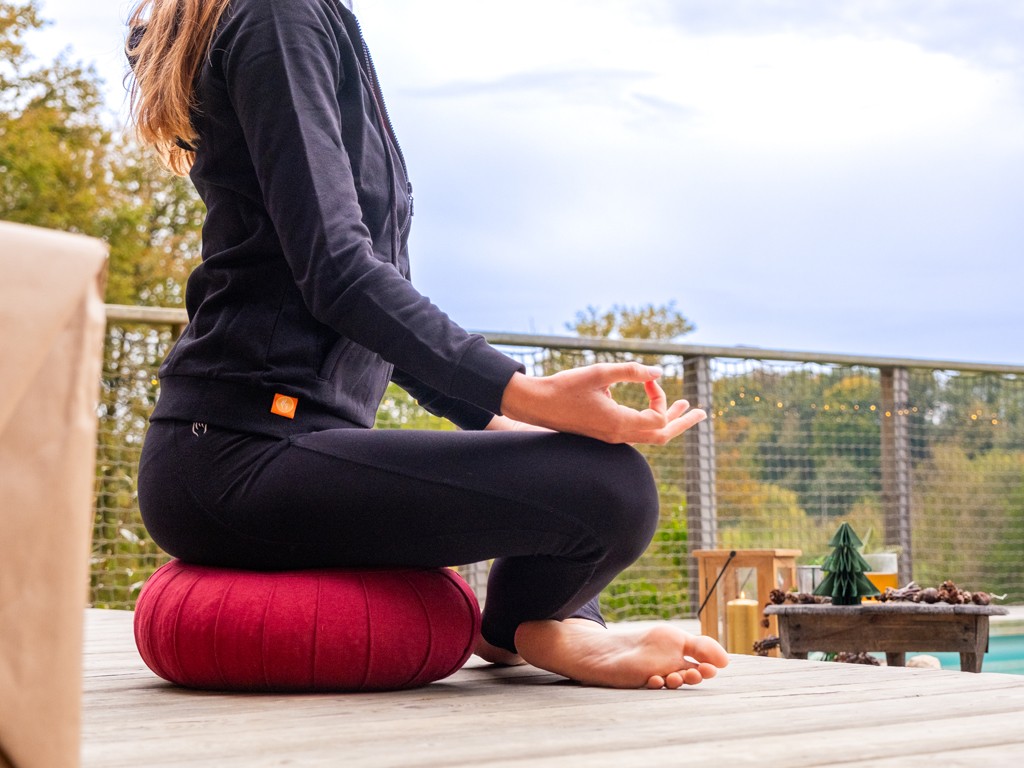 Rempli de balles d'épeautre biologique certifiée LACON INSTITUT, il soutient votre posture et vous aide à trouver un confort optimal pendant vos séances de méditation.