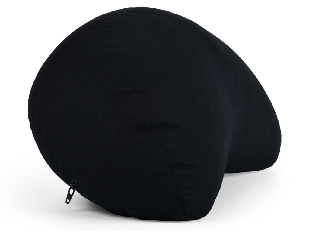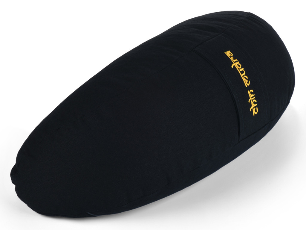 Coussin de méditation Fuzen avec housse 100 % coton Bio certifié par GOTS de couleur Noir, démontable grâce à une fermeture éclaire sous le coussin, petite poignée de transport à l'arrière du coussin.