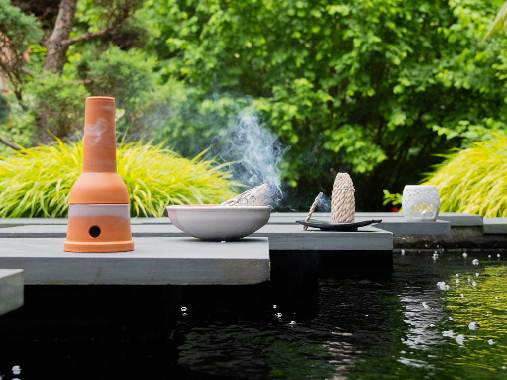 Déposez votre mélange de plantes à rituels favori, ou encore des fleurs séchées et de la résine dans le socle de votre encensoir Alambic puis laissez-les bienfaits des plantes se diffuser.