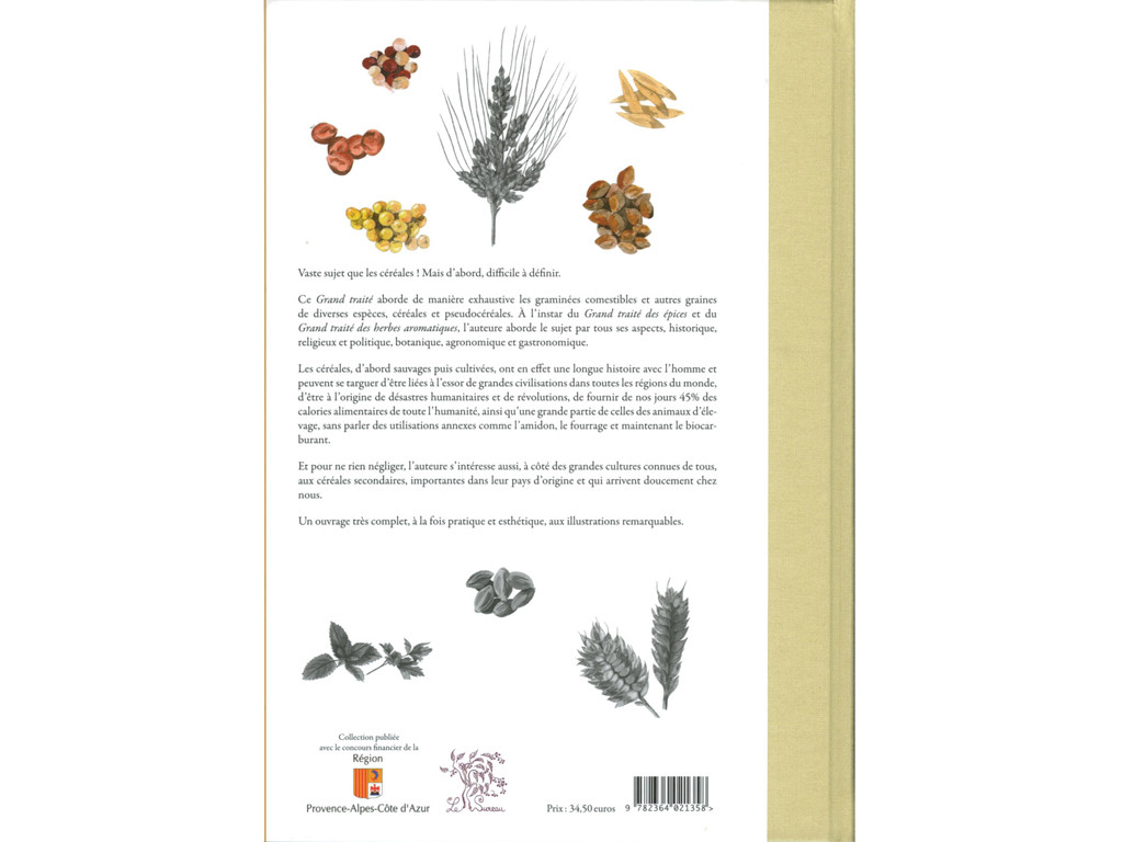 Ce Grand traité aborde de manière exhaustive les graminées comestibles et autres graines de diverses espèces, céréales et pseudocéréales. À l’instar du Grand traité des épices et du Grand traité des herbes aromatiques, l’auteure aborde le sujet par tous ses aspects, historique, religieux et politique, botanique, agronomique et gastronomique.